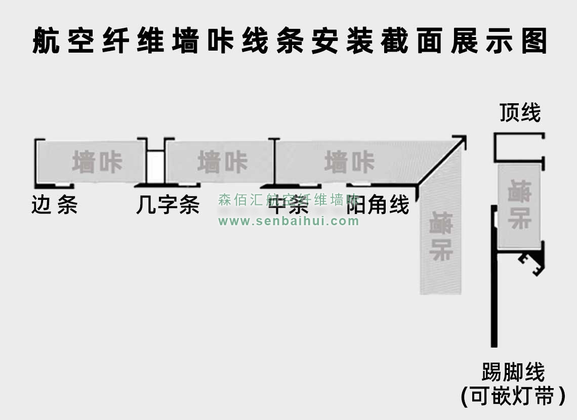 澄迈航空纤维墙咔铝合金带灯中条(钛金氧化)